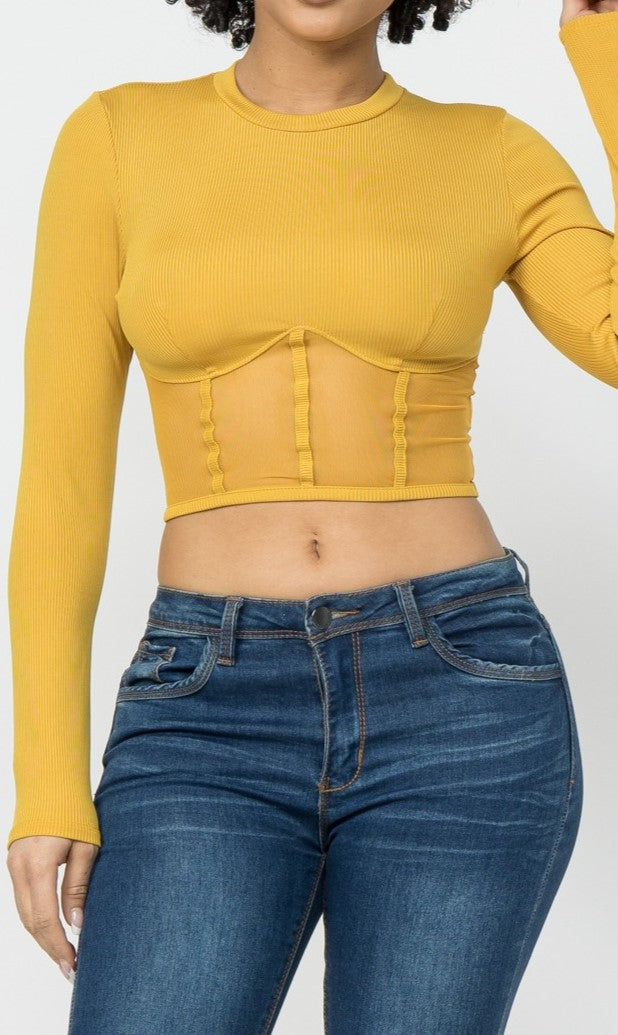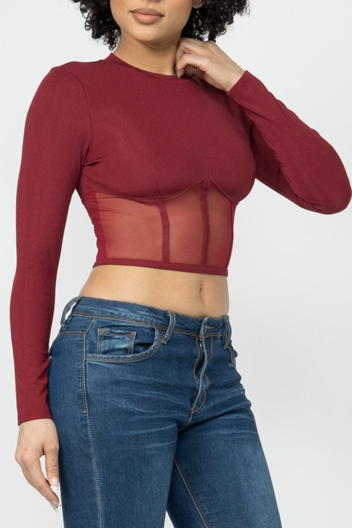 Corset Style Long Sleeve Crop Top